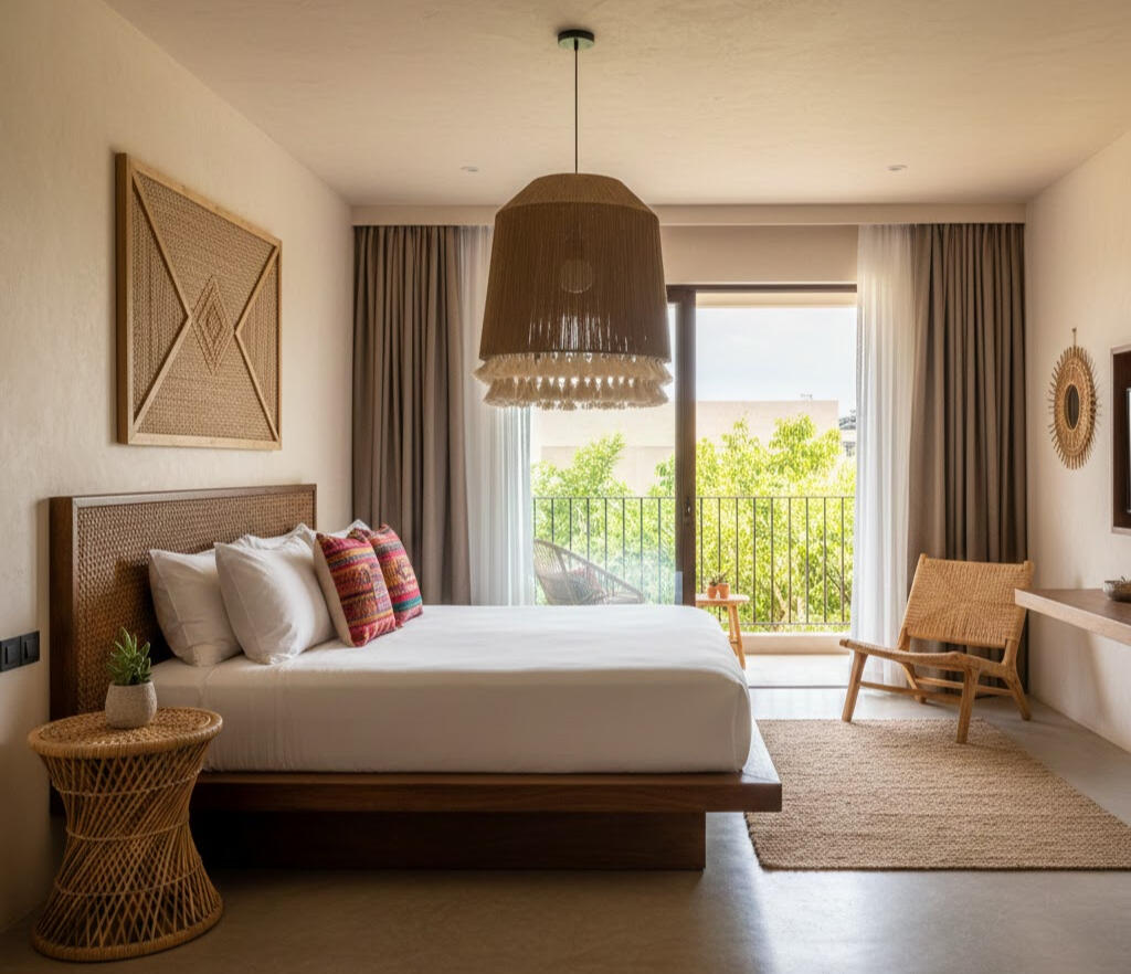 Taller mexicano fabricante artesanal de lámparas y pantallas de rattan y mimbre para hoteles y restaurantes.